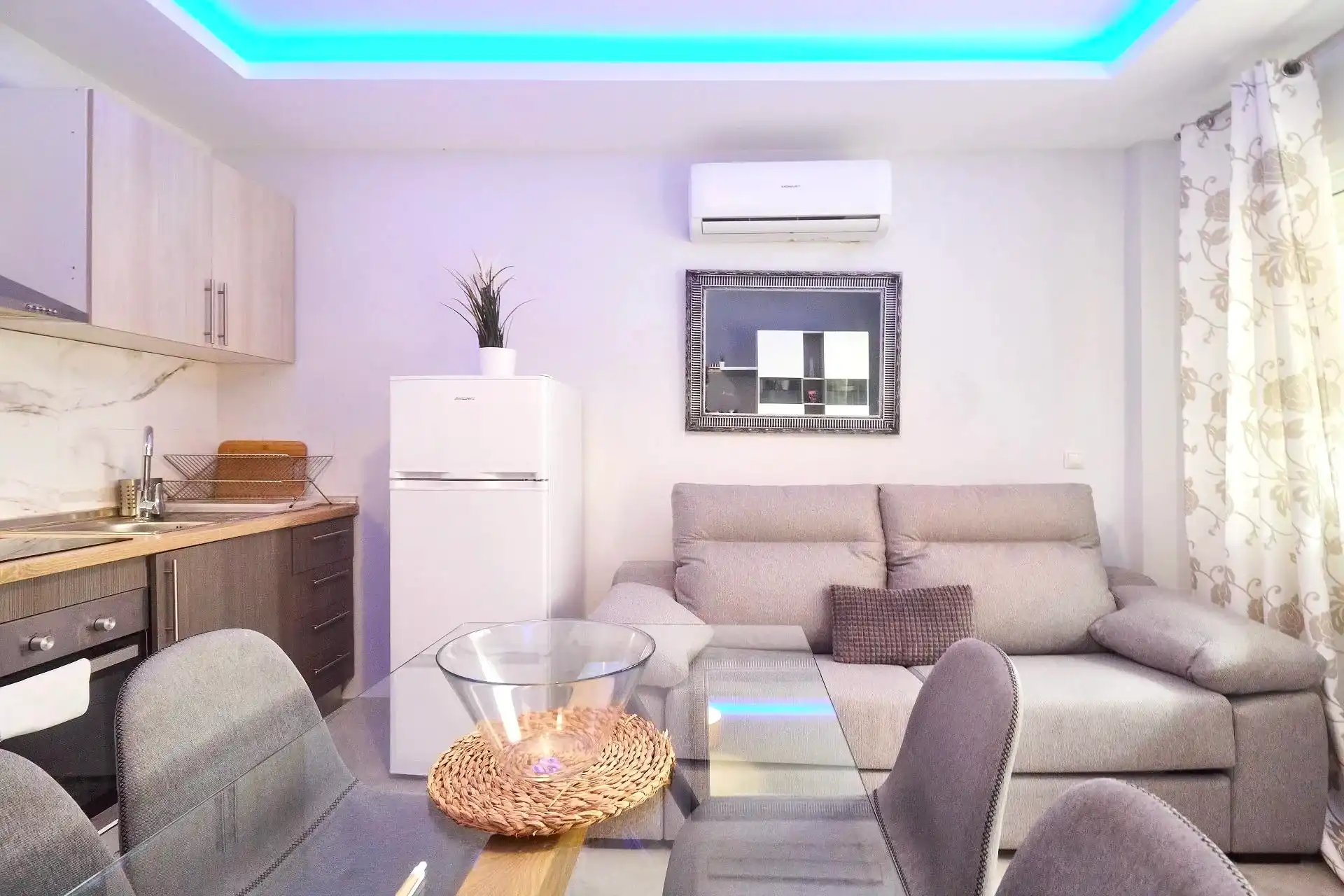 Luxury Suites Fuengirola está a 2 km de Playa de Fuengirola y a 10 km de Plaza de España, y ofrece wifi gratis y terraza. El alojamiento, que dispone de balcón, se construyó en 1990. Este apartamento con aire acondicionado consta de 1 dormitorio, una sala de estar, una cocina totalmente equipada con nevera y cafetera, y 1 baño con ducha.